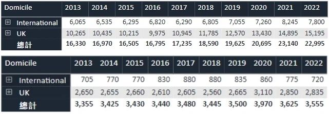 剑桥大学这十年间,前5年一直稳定维持在 20%左右 的录取率,而2018年往后开始不断下滑,2022年已创造史上最低记录—— 15.5%!