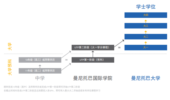 UTP第二阶段等同于曼尼托巴大学本科大一课程 。此阶段课程 可在三个学期之内完成 。顺利完成UTP第二阶段,如果学生在曼大大二入系截至时间前满足入系要求,且达到指定的最低入系平均分要求,就有资格转入曼大学位课程二年级学习。某些学位课程将根据名额限制择优录取学生。