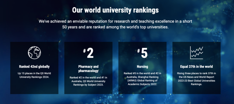 蒙纳士商学院在2022U.S. News排名中位居世界第十七位,全澳第一,是澳大利亚首个获有AACSB 、EQUIS与AMBA 三重认证的商学院。