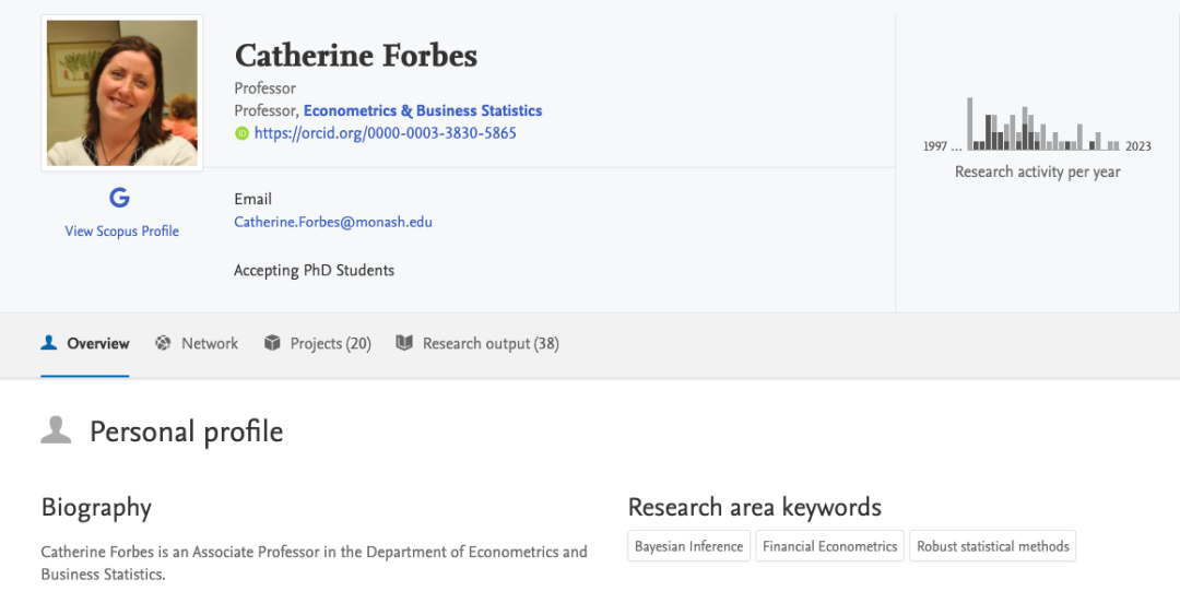 在俄亥俄州立大学获得数理统计学博士学位后,主要从事贝叶斯时间序列分析和金融计量经济学领域的研究。主要致力于开发计算统计方法,以处理时间序列数据中出现的复杂依赖关系,并在《计量经济学杂志》、《应用计量经济学杂志》、《商业和经济统计杂志》、《国际预测杂志》以及其他许多享有盛誉的国际学术研究刊物上发表过文章。目前,正与国际合作者(由美国国家科学基金会资助)共同开发新的稳健和非参数贝叶斯方法以及各种模型评估技术,主要应用于金融和精算领域。目前或曾经指导过 16 名博士生和 3 名硕士生,以及 16 个应用计量经济学荣誉生或硕士生的研究项目。
