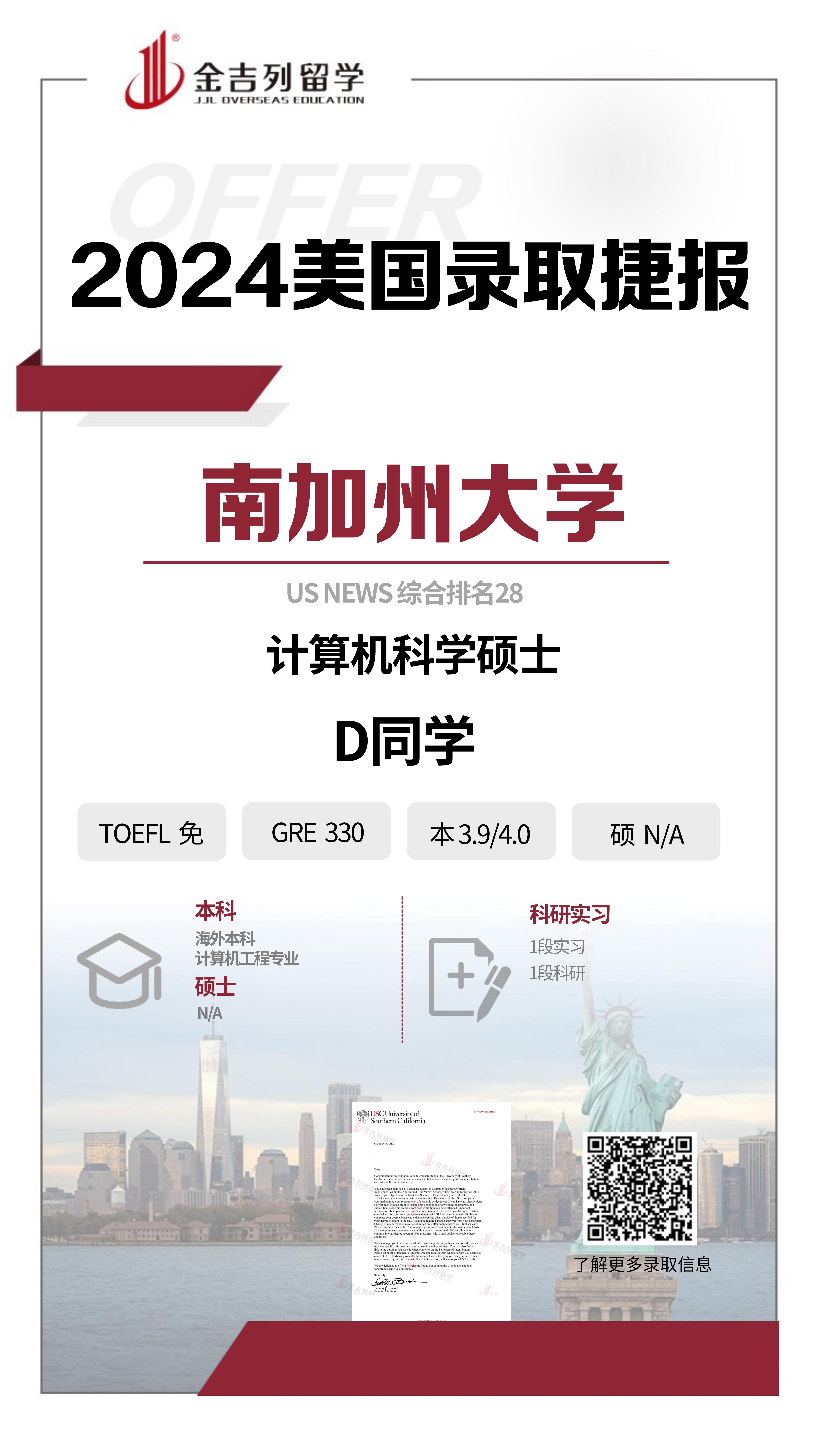 南加利福尼亚大学(University of Southern California),又译南加州大学,简称南加大(USC),私立研究型大学,位于美国洛杉矶,1880年由监理会创立,是美国大学协会和环太平洋大学联盟成员。 南加州大学位列2024年U.S. News美国最佳大学排名第28。校友及教职工中共有10位诺贝尔奖得主、 6位麦克阿瑟天才奖得主、1位图灵奖得主。 南加大拥有曾被评为全美国排名第一的电影学院、全美国排名第一的老龄学院、全美国排名第三的公共政策学院、全美国排名的第十的工程学院。被卡内基基金会归类为“特高研究型大学”