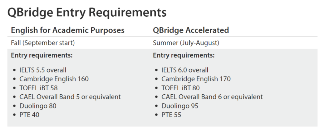 对于语言不太好的小伙伴也不需要太过担心。女王大学拥有双录取,和完整的语言预科,包括Q-Bridge和EAP两种英语衔接课程,帮助 国际学生达到大学本科录取的语言要求 ,可以使学生为今后学位课程的学习做好充分的准备。