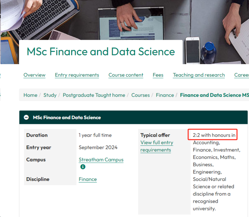 非商科新开设的四个硕士课程录取要求均为英本higher 2.2 (57%):