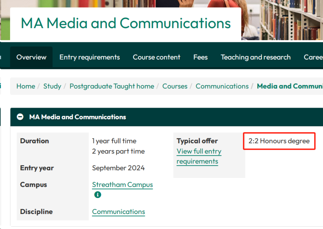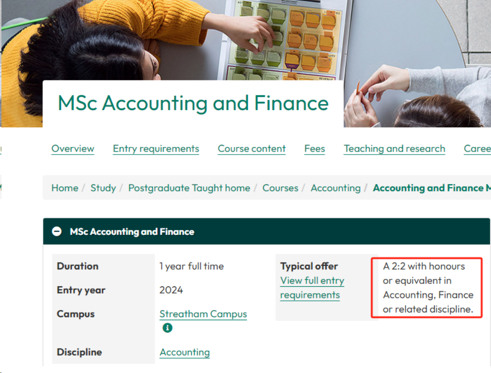 部分商科课程的录取要求调整为英本2:2或同等国际水平,如: