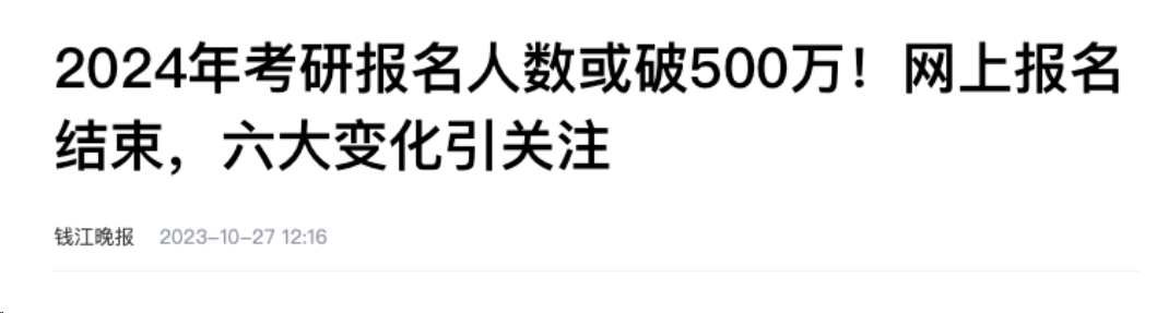 2024年国内考研报名已经截至,据统计今年报考人数已经突破500W人!从以往数据来看,从2020年开始这三年的报名人数分别为341W人、377W人和457W人,2023年增长到474W人。