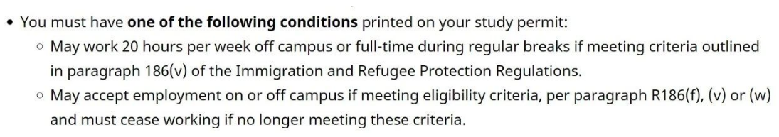 - 您在学习期间已经可以在校外工作 - 您在学习许可到期前申请了工作许可或毕业后工作许可 (PGWP)