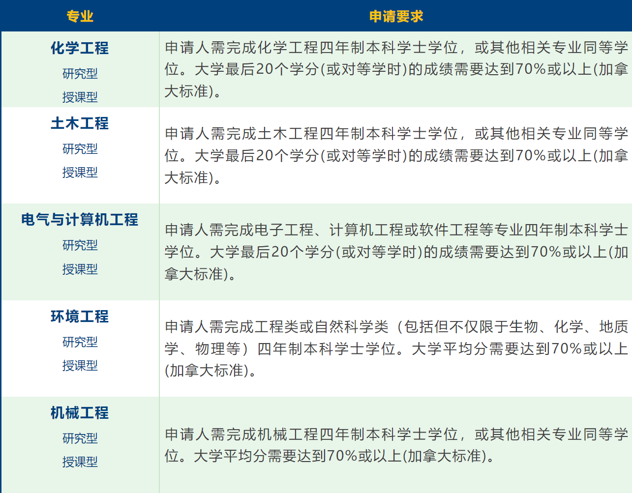 湖首大学工程类研究生学位名称为Master of Science in Engineering工程类理学硕士,其中细分的专业有: