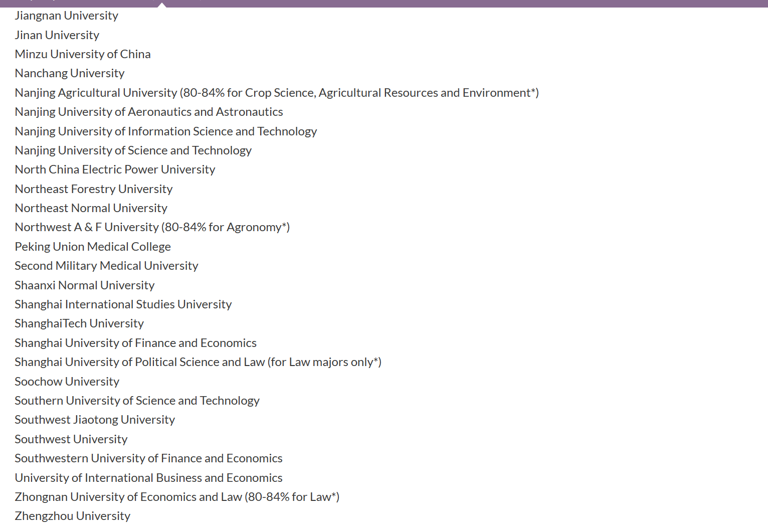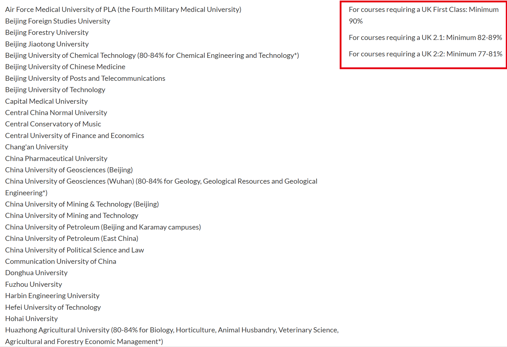 以上院校一等专业要求90%;二等一专业要求82-89%;二等二专业要求77-81%