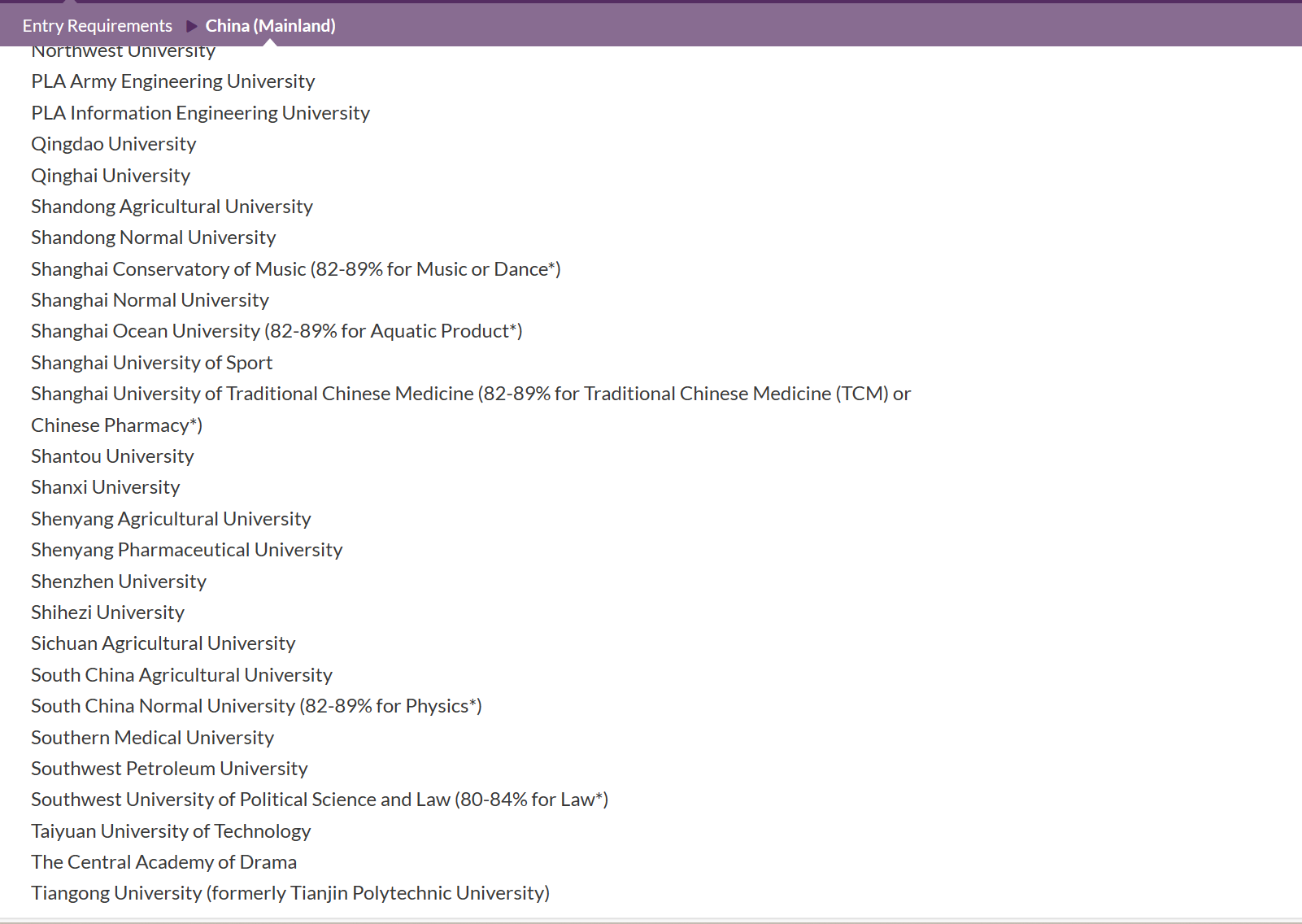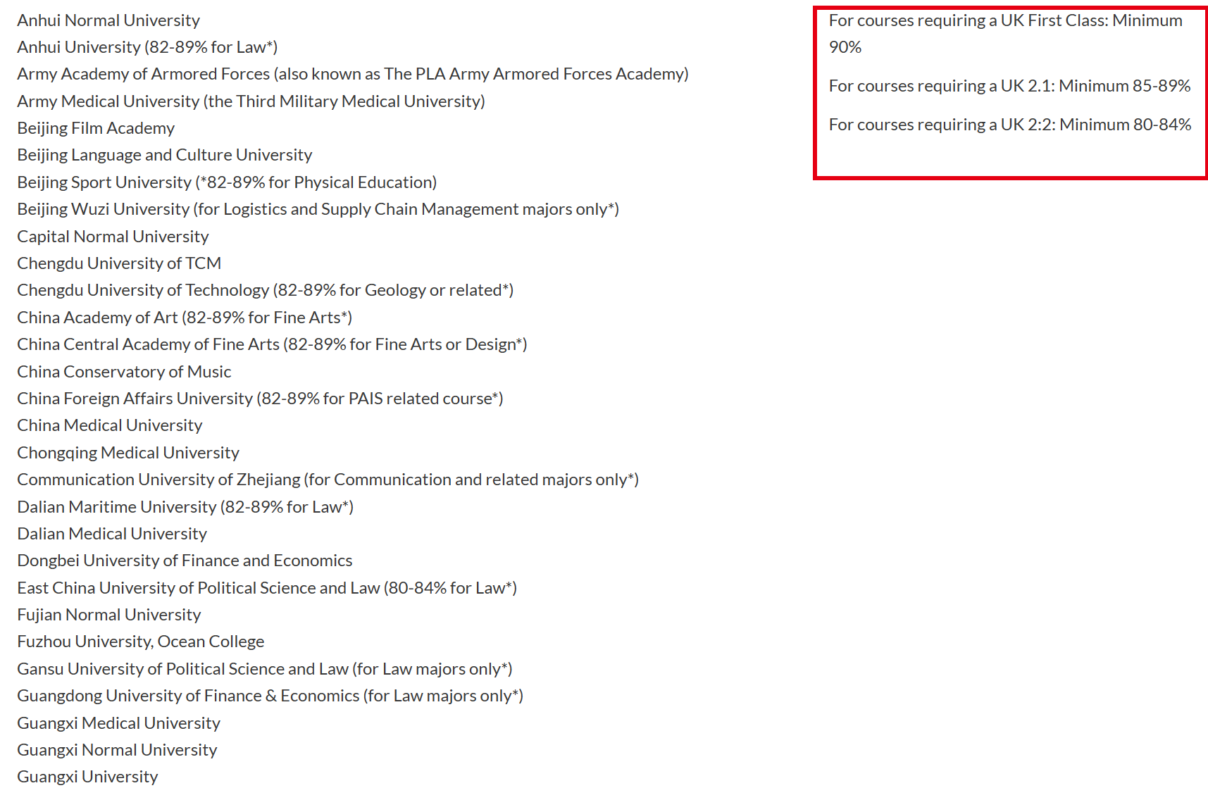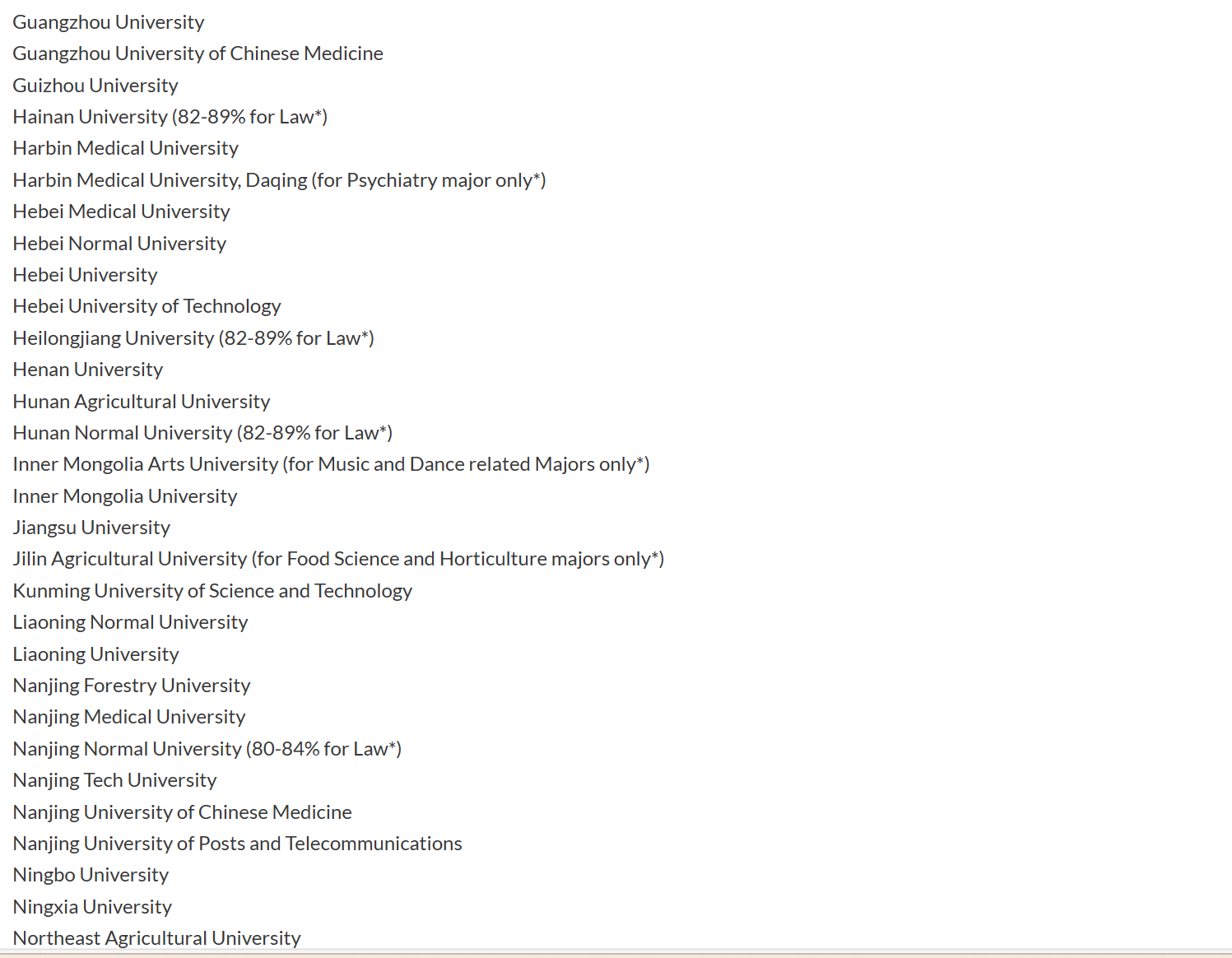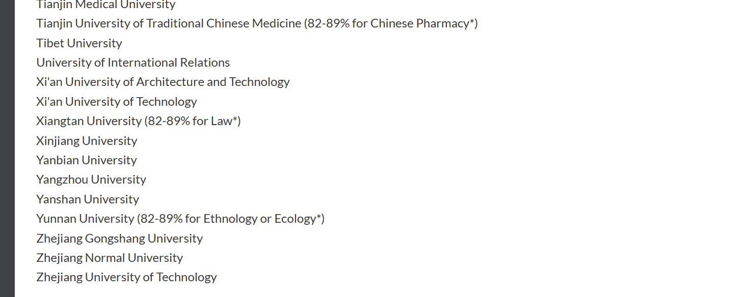 以上院校,一等专业要求90%;二等一专业要求85-89%;二等二专业要求80-84%;