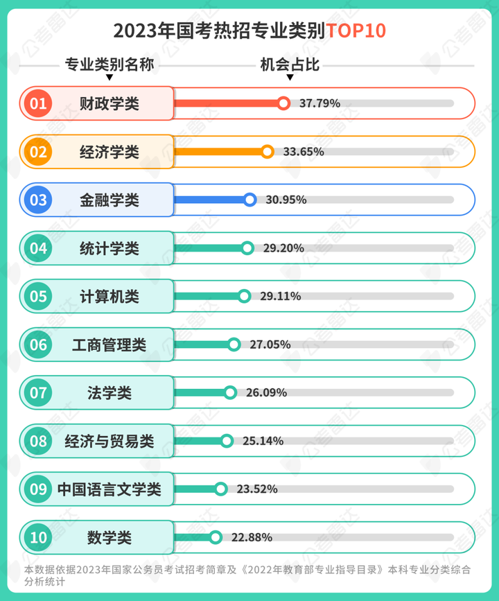 考雷达曾统计的2023年国考热门专业TOP10,分别是: