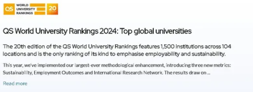 如果计划回国就业,国内很多HR会更加参考综合性强的QS排名。不少落户政策、人才引进计划也都与QS挂钩。