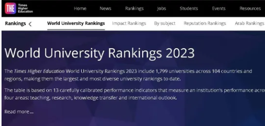 最后,同学们如果想继续深造,或是走学术路线,对学校的学术水平要求较高,可以多参考THE排名。