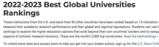 如果计划申请美国,那么U.S. News世界大学排名的参考价值比其他三大排名都要高。
