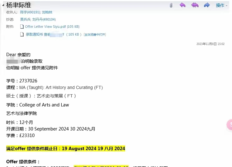 今年的终极大满贯选手,到现在为止已经拿到了爱丁堡大学,利兹大学,伯明翰大学,兰卡斯特大学,伦敦玛丽女王大学,利物浦大学的offer,无一拒信,期待加申的kcl和ucl录取通知书哦,有想了解艺术相关专业申请的同学们来找我沟通吧