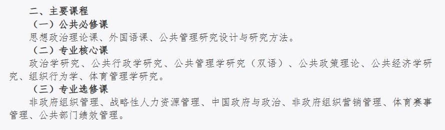 该校体育管理专业设置在经济管理学院下,提 供本科、硕士和博士学位 ,这里主要针对 本科和硕士学位课程 进行详细介绍: