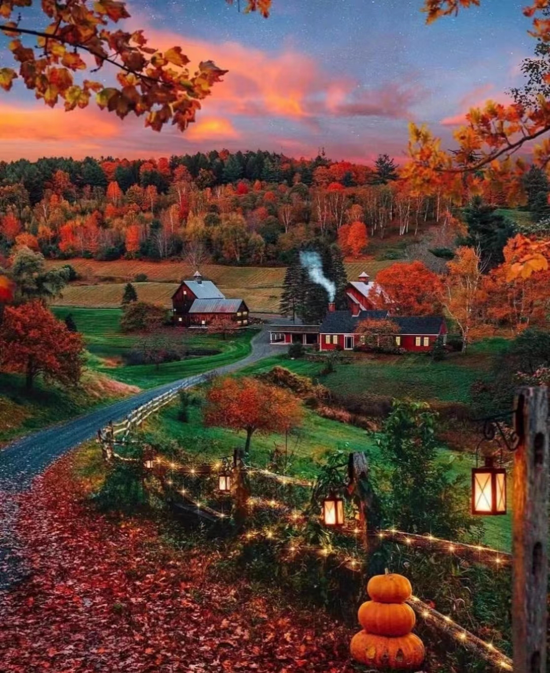我想,那应该是Vermont 佛蒙特州(Vermont)地处美国东北新英格兰地区,据说这里的秋天为全球最红;Vermont很小,几小时就能开车逛完一圈,最佳赏秋时期:9月中旬至10月中旬,推荐赏秋地:Jenne Farm阿甘正传取景地,阿甘跑进漫天红叶的小镇就是指的这里,Sleepy Hollow Farm 经典打卡机位,拍照相当出片,不过农村是私人的不能进入Stowe小镇里的白色教堂配上漫天枫叶,比天堂还美,Lake Dunmore湖边小屋是现实中的童话世界,特别梦幻,Foliage Viewpoint 这里是真正的万山红遍层林尽染,仿佛上帝打翻了调色盘,在这赏景可以待上一整天。