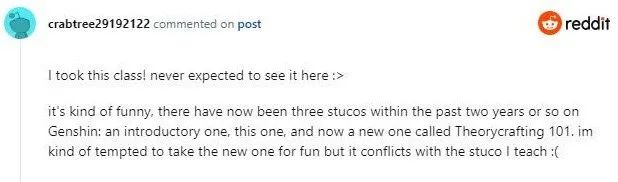 而在流传出来的 2024年 的一张课表上,还能看到《Genshin Impact - Theorycrafting 101》(《原神》理论推导101)这门新课。