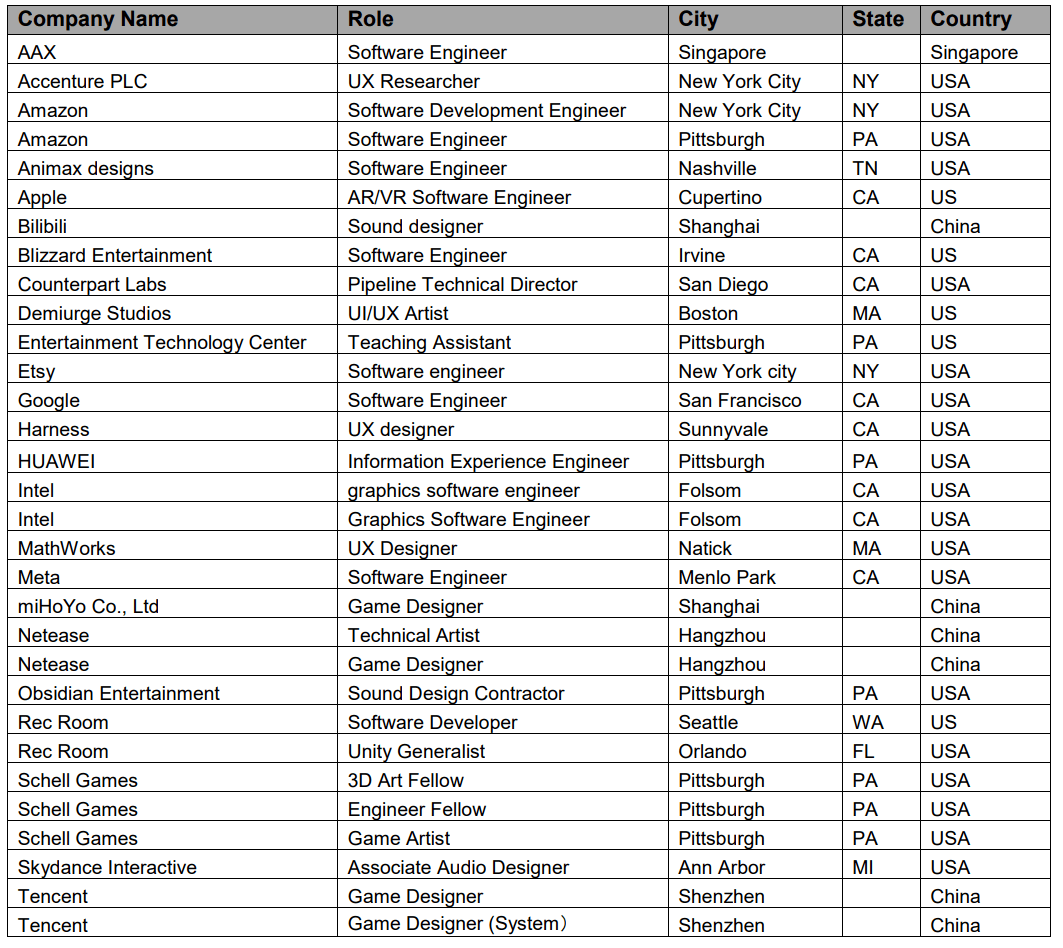 MET的毕业生们在职业的选择上非常灵活 , 不仅可以成为 Software Engineer, Game Designer , 还可以成为 UI/UX Artist, Graphic Designer 等等,入职包括 亚马逊,苹果,谷歌 在内的知名企业。据2022年的调查统计显示, MET的毕业生就业率高达94% 。