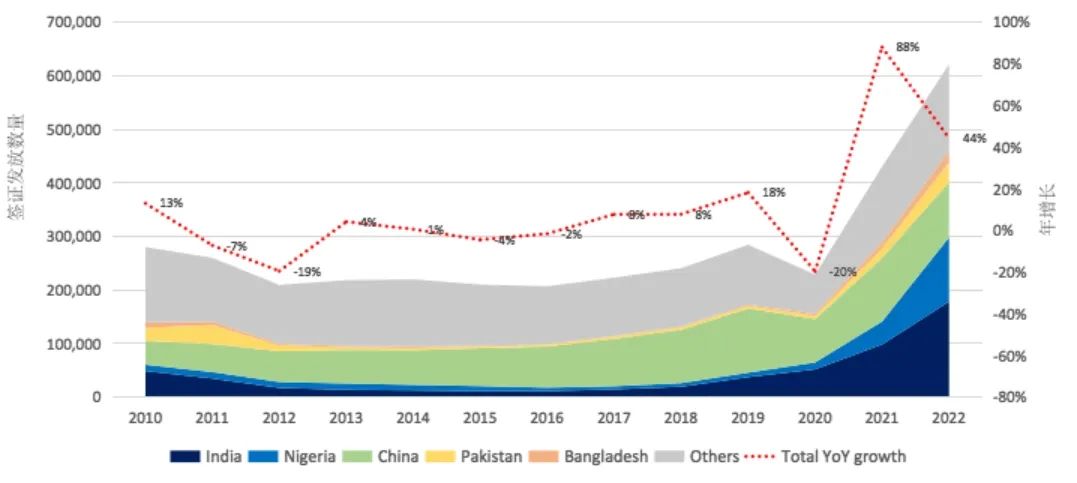 近十年间英本中国申请者增长286%左右,中国是英本申请最大海外生源国。