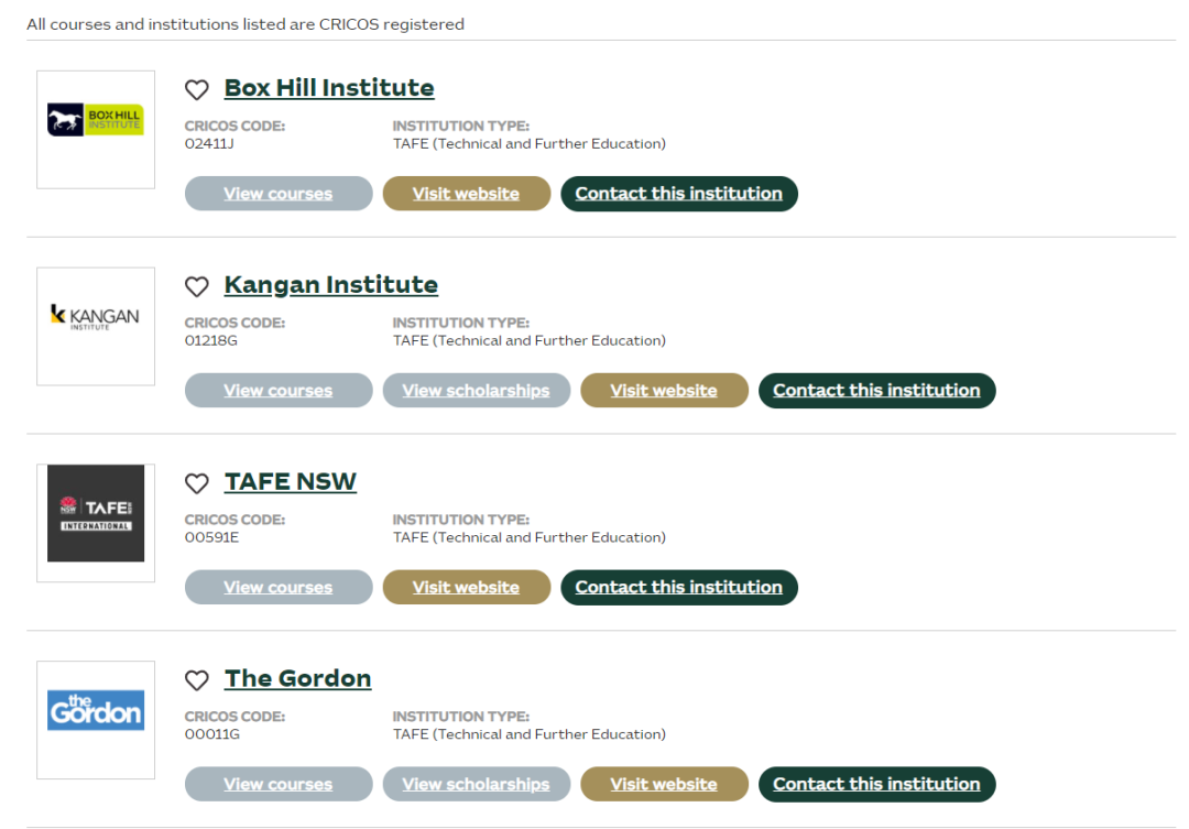 在这里需要提醒大家,如果你不确定你想申请的项目是否收国际学生时,你可以在选择项目时查看该项目是否有 CRICOS 编码,也就是澳洲政府认证的招收国际学生编码,如果该项目有注册 CRICOS,就说明这个项目是有资格招收国际学生的。