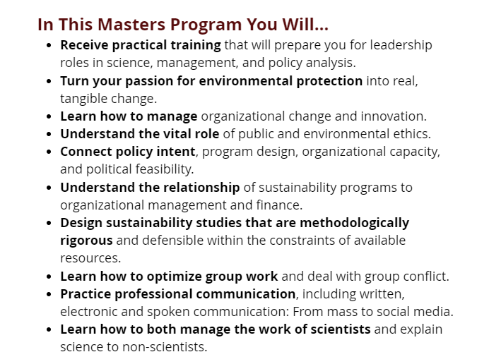 MS in Environment and Sustainability Mgmt