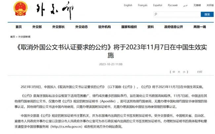 中国将取消公证认证,11月7日起生效,加拿大也将在2024年1月11日生效!