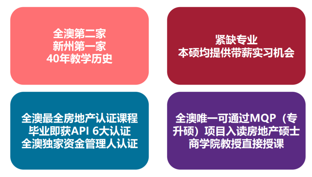 • 硕士毕业后无需考试,直接获得API六大认证 • 全澳唯一提供资金管理人认证(CFM)的房地产硕士课程