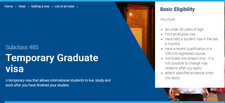 澳大利亚毕业生工作签证是专门对于刚在澳大利亚完成规定学时的学习并取得相应文凭的国际学生。