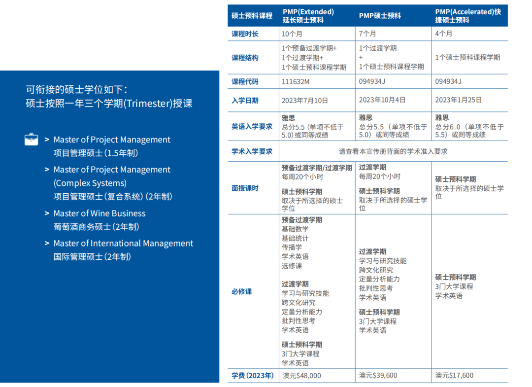 塔斯马尼亚大学 硕士预科课程帮助学生为深造和职业做好准备。学校提供两种课程,根据学生成绩和英语能力,可以分别学习或者组合学习。