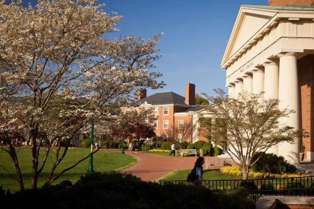 维克森林大学校园不大,但校如其名,340英亩的校园简直是花和树的海洋。到了秋天,红墙白瓦的建筑之间,落叶纷纷,堪称全美最美秋景之一。
