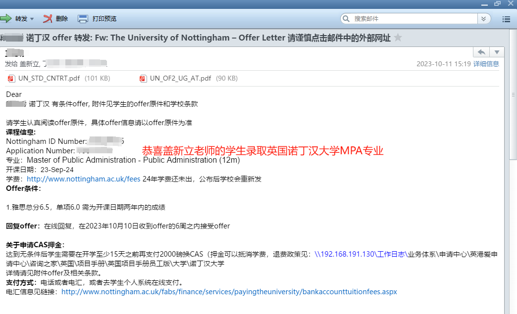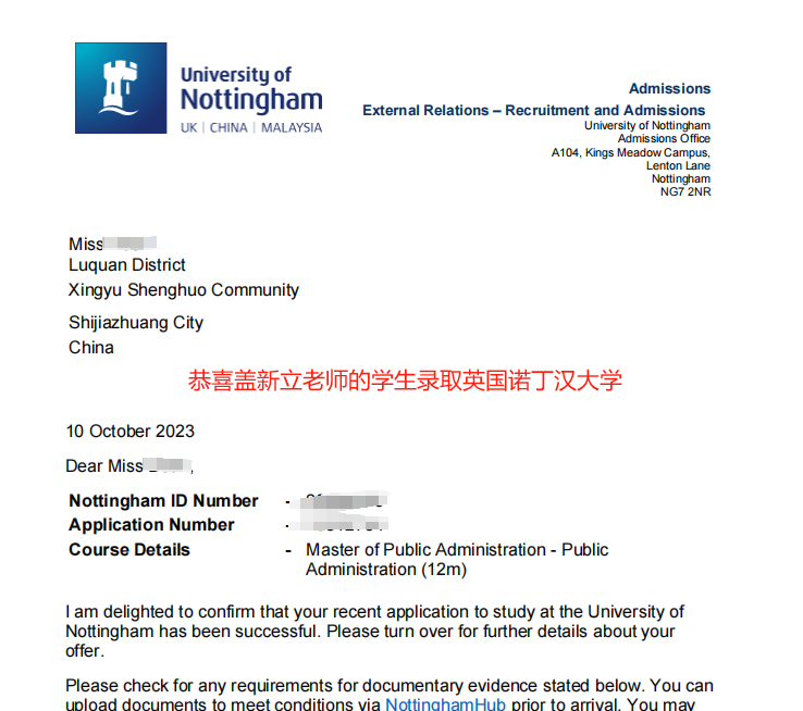学生背景:双非一本,均分85,申请时无雅思,录取英国诺丁汉大学MPA 专业。
