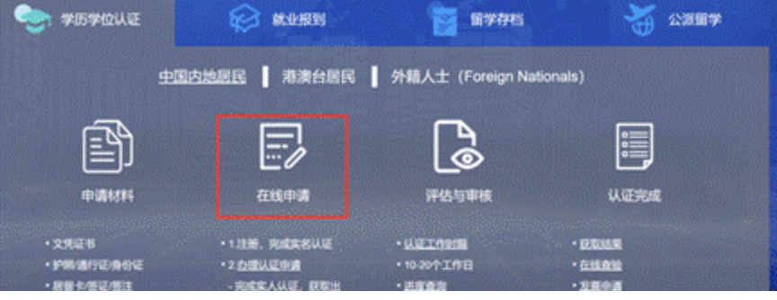 登入个人账户后,选择“在线申请”,进入到认证申请页面。