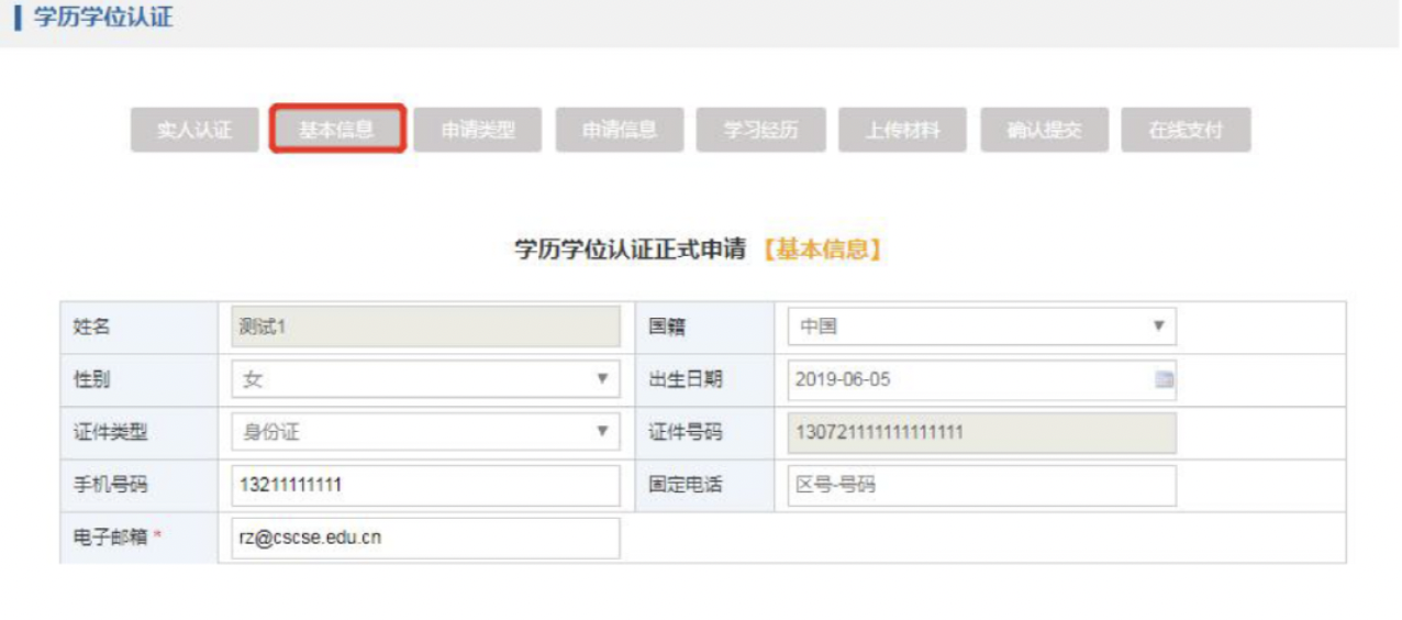 4.填写认证申请信息。 说明: 一份认证申请只能进行一个学历学位的认证 ,如果申请人持有多个学历学位需要认证,请分别填写认证申请信息,并请确保填写的认证申请信息与上传的认证材料一致。