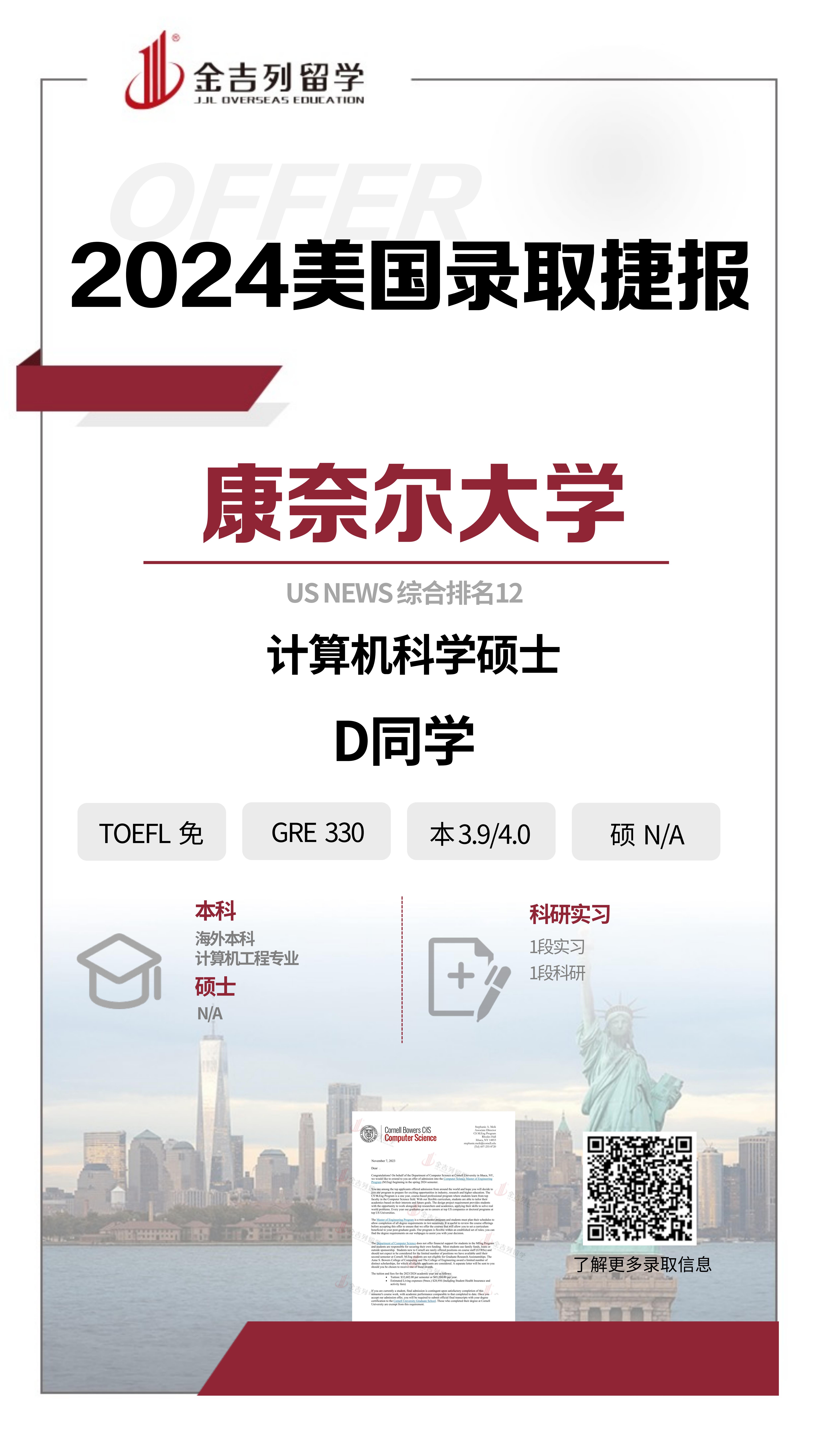 录取结果:康奈尔大学计算机科学硕士录取(USNEWS 综合排名12)