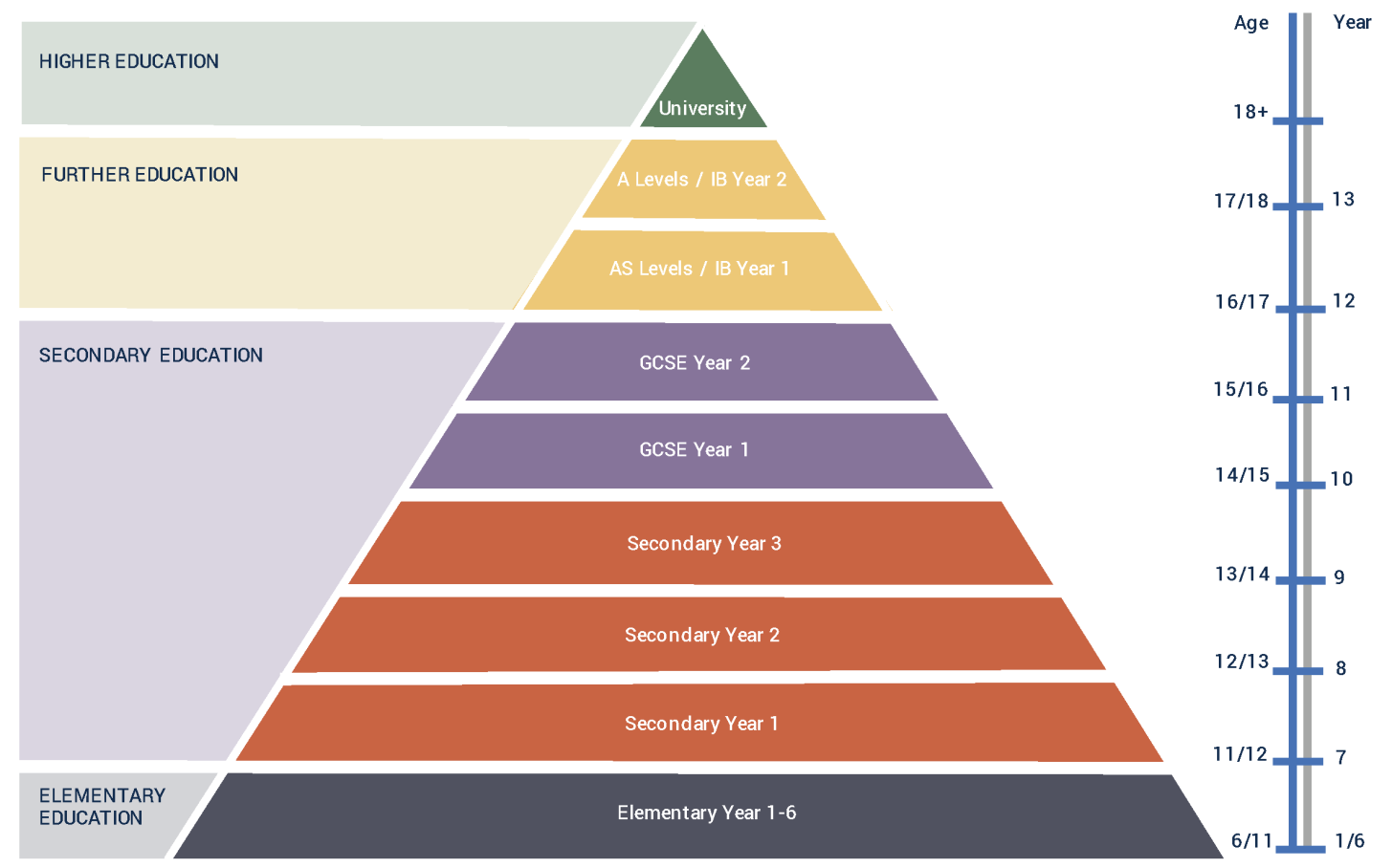 ❖ 英国很多学校是 K13 教育, 横跨从幼儿园、小学到 初中和高中结束