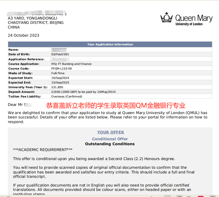 学生背景:英国格拉斯哥大学本科,计算机专业,递交英国QM,转专业申请金融银行专业。