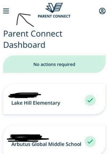 2.您将看到一个主屏幕,其中应列出您孩子就读的我们学区的所有学校(包括之前的学校,如果它 们已在系统中)