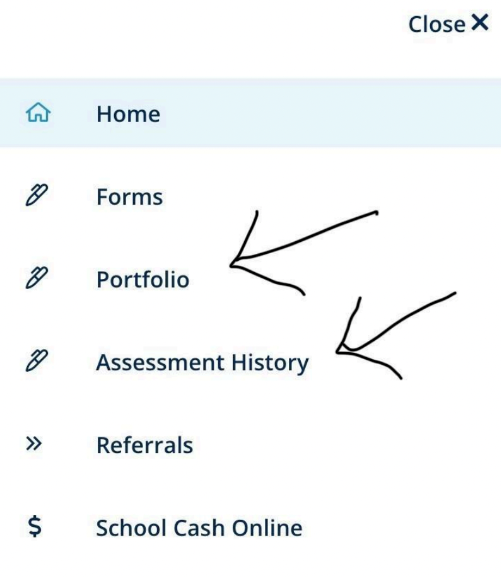 3.单击菜单图标 – 左上角的三条水平线(参见附图 1,箭头指向菜单图标,示例学生的姓名被涂黑)