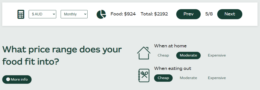 澳洲官方公布了一项计算工具,可以轻松计算出在墨尔本生活一个月,生活支出究竟是多少。