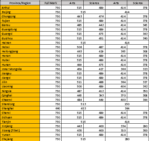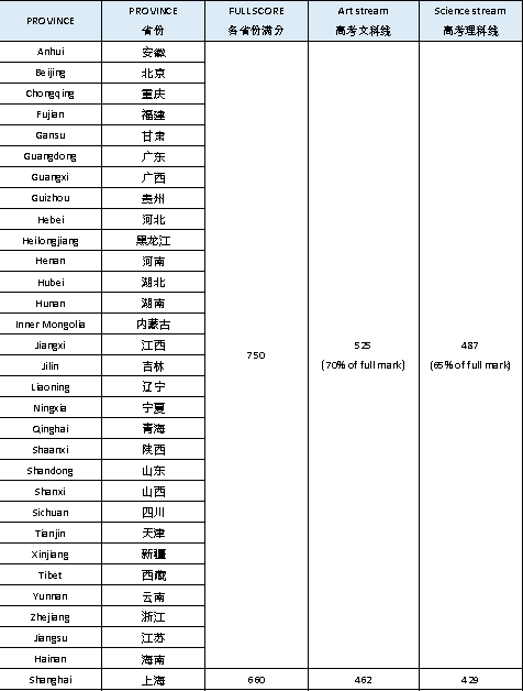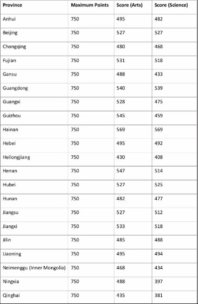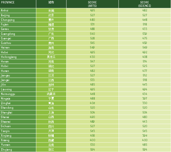 - 高考成绩要求:文科类【高考满分的70%】、理科类【高考满分的65%】(具体省份要求如下图)