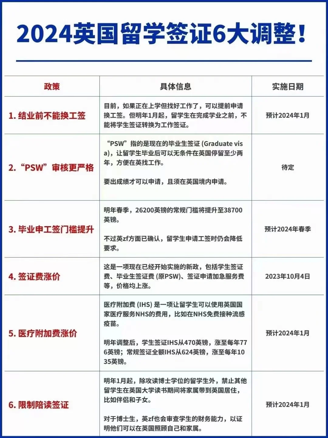 英国留学的同学注意一下,2024英国留学签证6大调整。