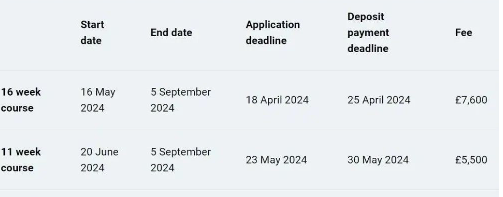 南安普顿大学2024年开设6周、11周和16周语言班,有线上或线下两种模式,语言班具体信息如下: