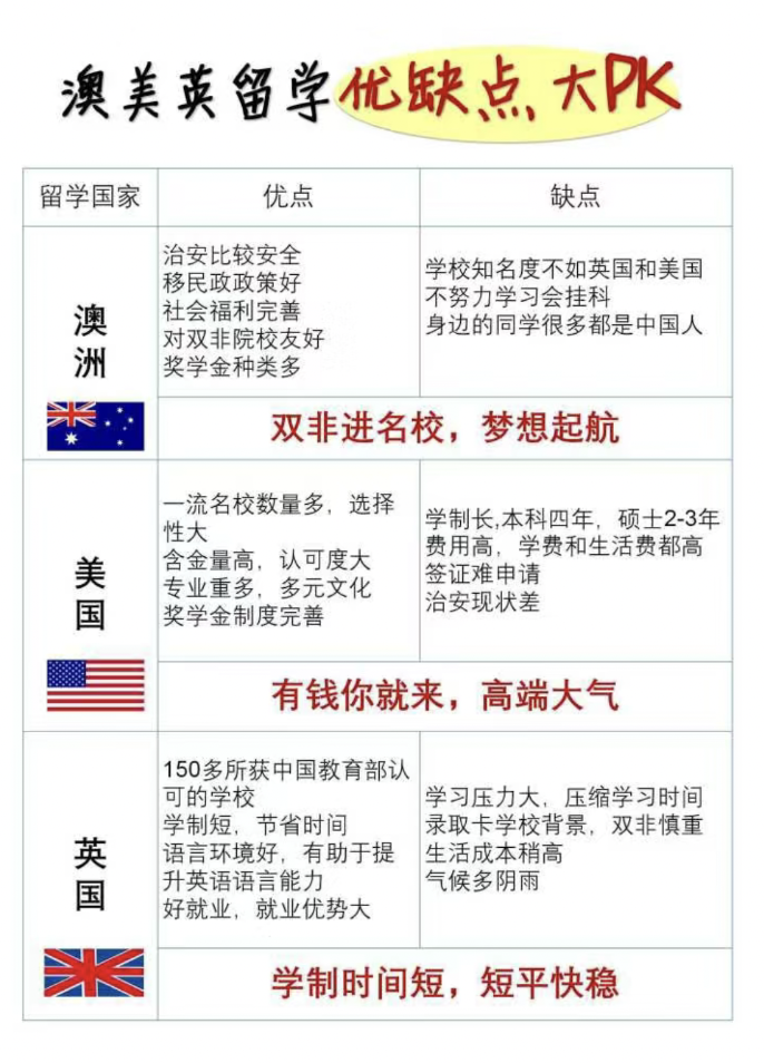 总结:出国留学要根据专业背景,留学预算以及个人喜欢来选择国家。