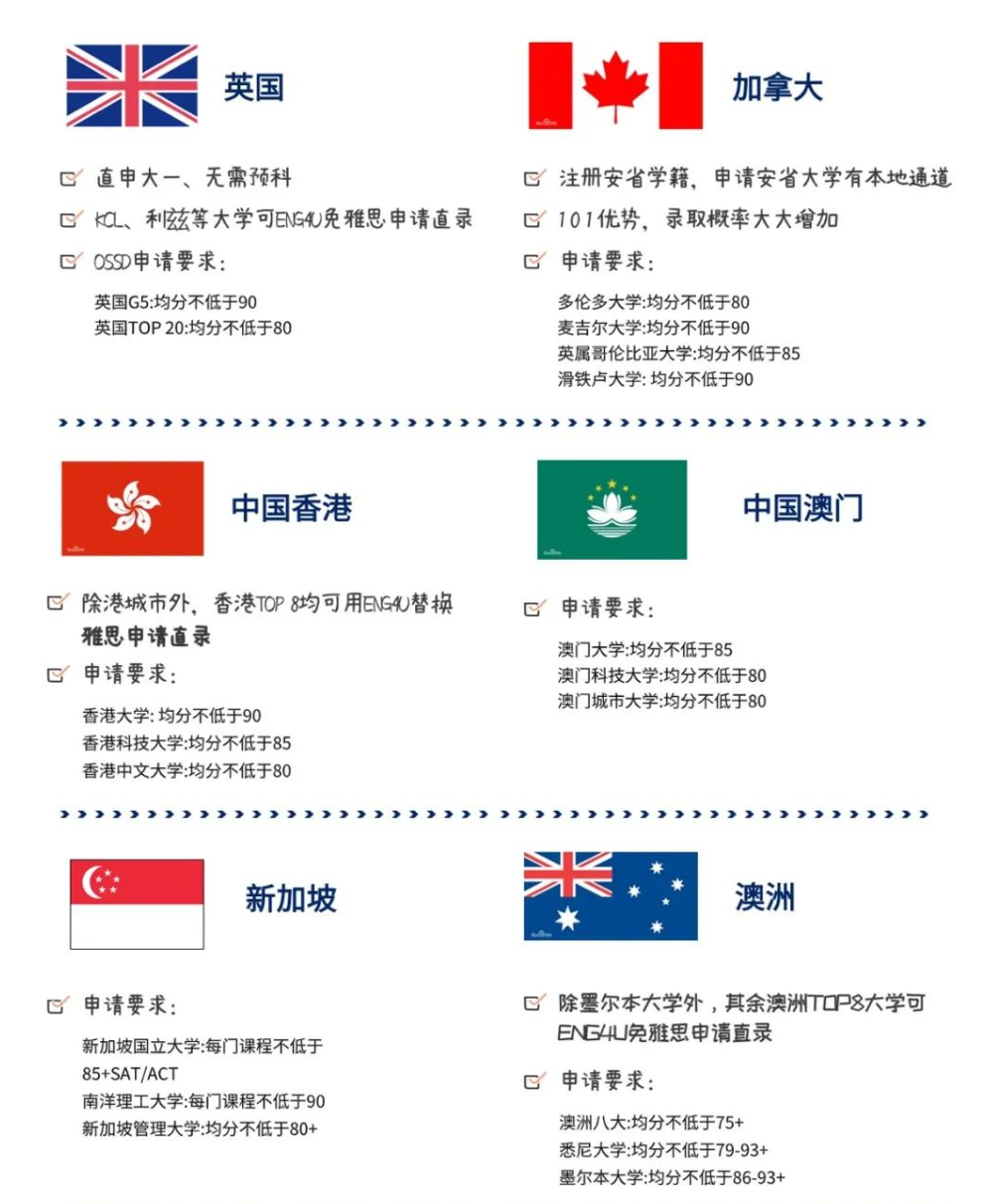 英美澳加香港地区世界前100大学申请要求为6门12年级4U/4M课程均分为75-90+。