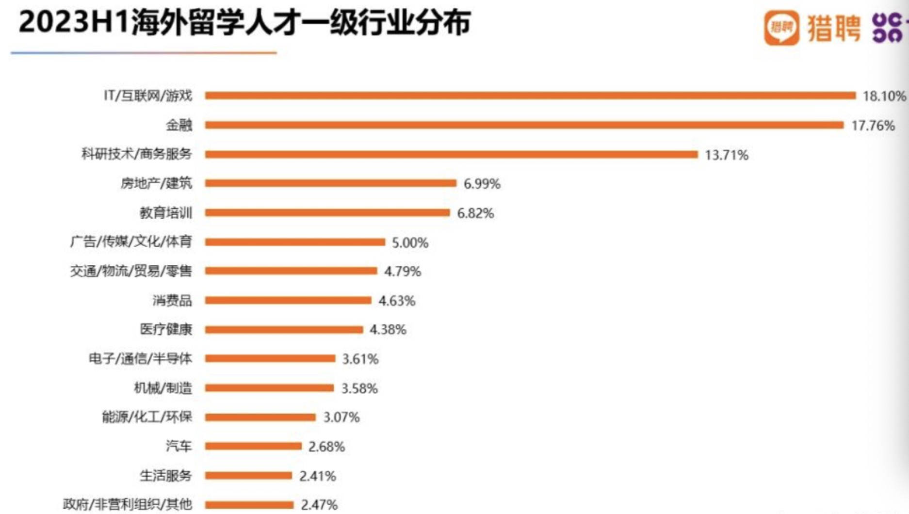 从2023年上半年的数据来看,海外留学人才选择从事的行业集中在:
