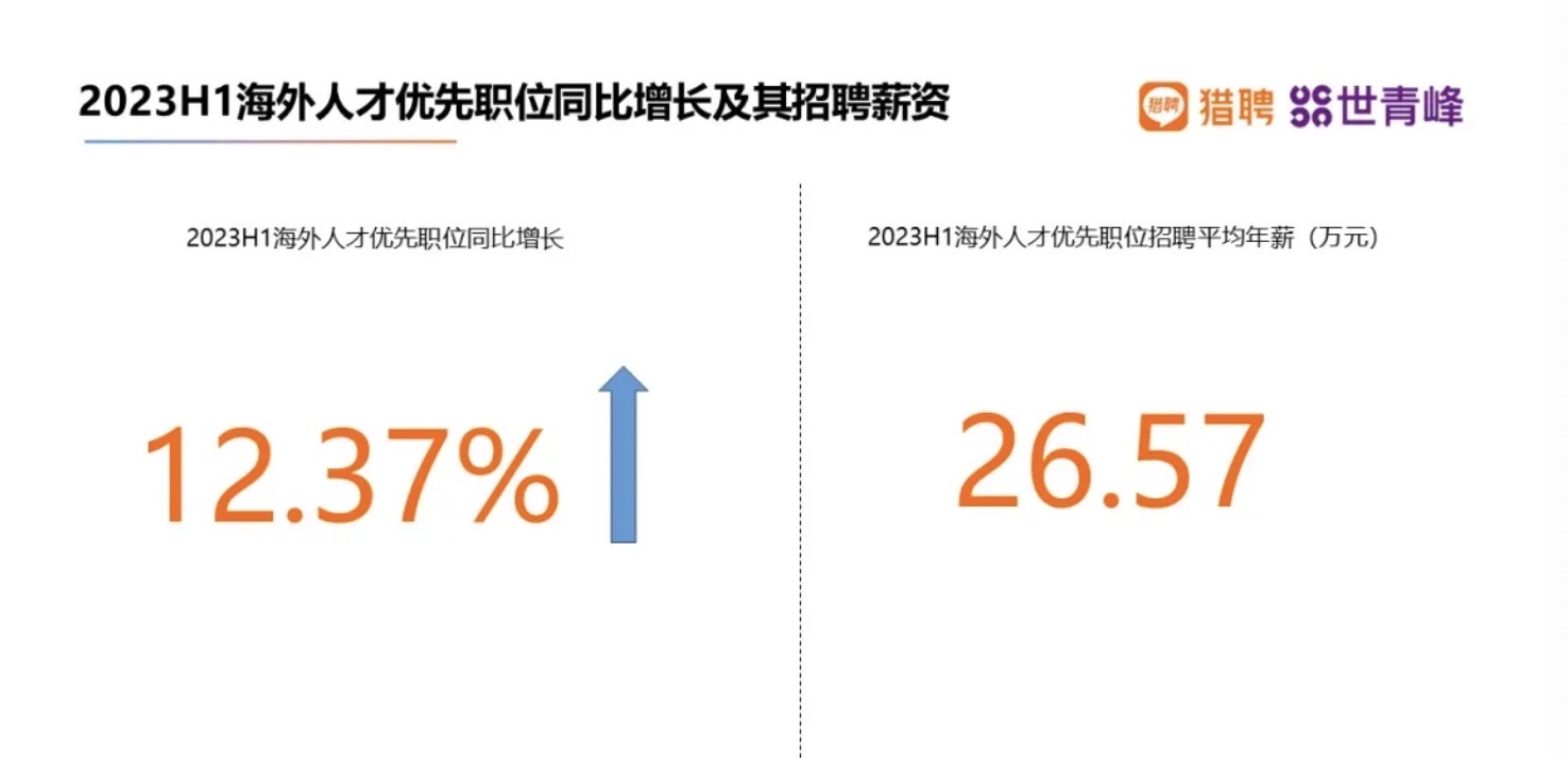 随着经济有所好转,各企业慢慢恢复了活力,海外留学的人才招聘也出现了回暖。从2023上半年的招聘数据来看,海外留学人才优先职位同比增长了12.37%,平均年薪也较为可观,达到了26.57万元。