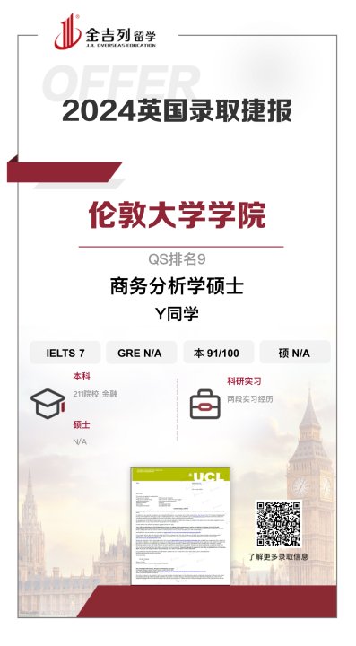 > 伦敦大学学院商业分析专业录取!