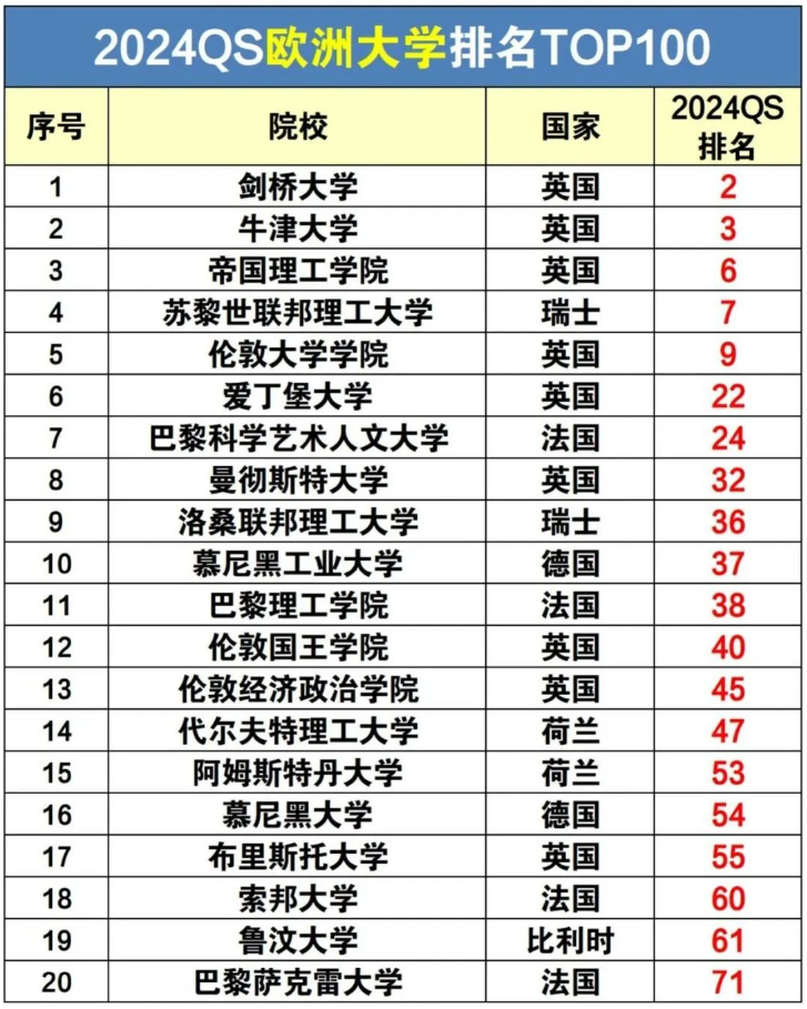 德国、瑞士、奥地利、卢森堡、冰岛 等国家,这些国家的公立大学,每年只收取少量注册费,不收学费; 另外法国、比利时、意大利和西班牙等国家的大学对非欧盟学生收取的学费也比较低廉,大多每年只有2000欧元-6000多欧元左右。 这些国家有众多知名大学,世界排名前200甚至前100、前50,并且提供众多英文授课硕士与博士项目。