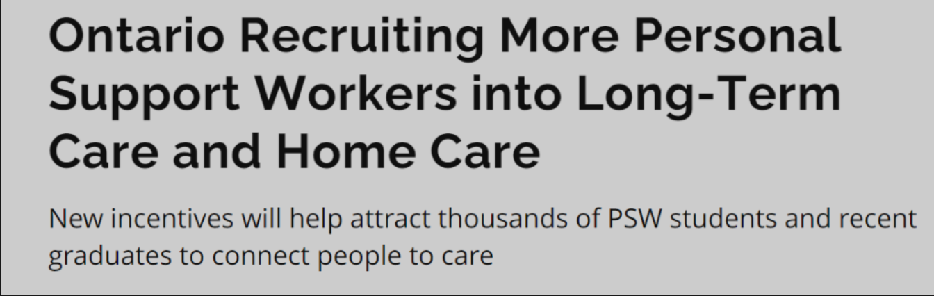 - 为承诺在长期护理院或家庭与社区护理服务提供商工作 12个月的在校学生和应届毕业生提供 10,000 CAD;
