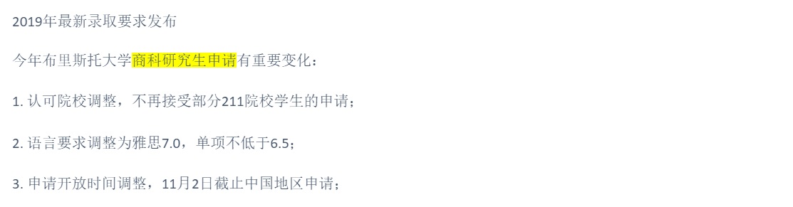 布里斯托商学院涨要求啦,准备申请的同学们注意!!!
